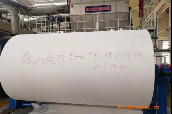 10月21日,唐山美特好衛生用品有限公司2號紙機順利投產。2號紙機與2019年7月29日投產的1號紙機型號一致,均為輕工業杭州機電院設計、加工的新月型衛生紙機,紙機幅寬3550mm,設計車速1300m/min,單機設計產能2.5萬t。隨著2號紙機的順利投產,公司年產5萬t的一期生活用紙項目全部投產運行。