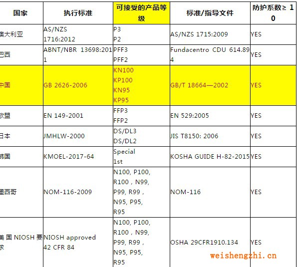 3月17日,美國疾病控制與預防中心(CDC)發布《優化N95口罩供應策略:危機/替代策略》,指出新冠肺炎疫情期間,當N95口罩供給不足時,按下表中標準生產的口罩,是N95口罩合適的替代品。其中包括采用中國標準GB 2626-2006 和GB/T 18664—2002生產的口罩。