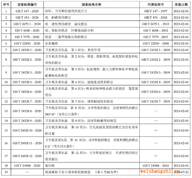 核心提示: 2020年7月21日,國家市場監督管理總局(國家標準化管理委員會)批準公布了199項國家標準和3項國家標準修改單(2020年第17號),其中涉及18項造紙國家標準及1項修改單,具體見下表,請各相關單位積極實施新標準。