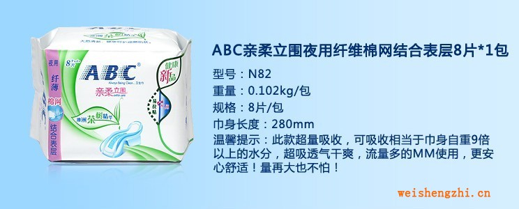 | 重量:0.102(g/m2) | 型號:N82 | 包裝形式:夜用裝 |
