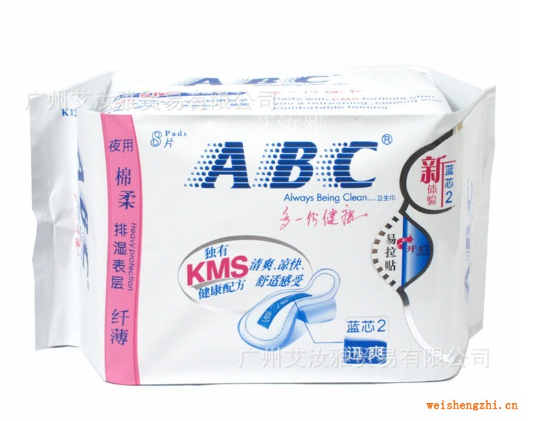產品名稱:ABC 夜用纖薄棉柔排濕表層衛生巾(含KMS健康配方)