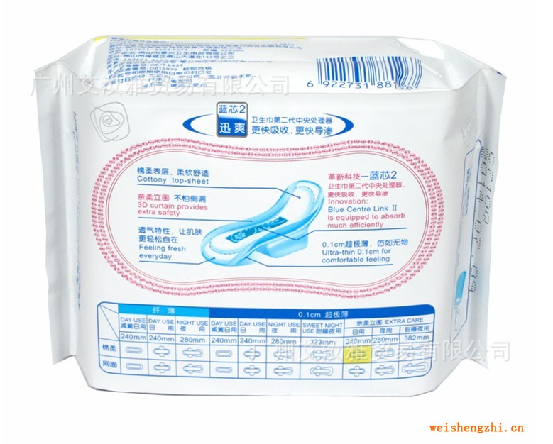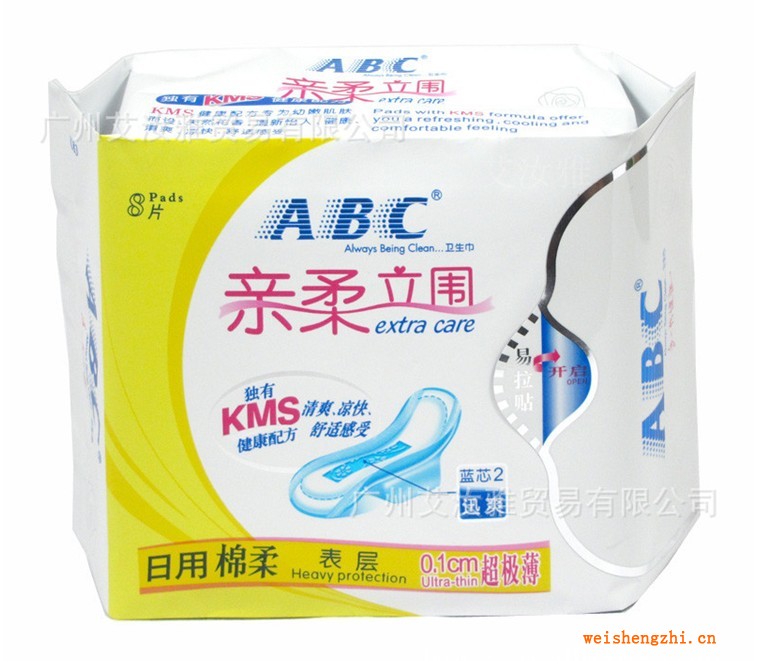 產品名稱:ABC衛生巾親柔立圍日用超極薄棉柔 包裝數量:8片/包 48包/箱