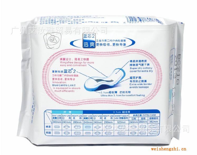 2、革新科技--藍芯2,衛生巾第二代中央處理器更快吸收,更快導滲。