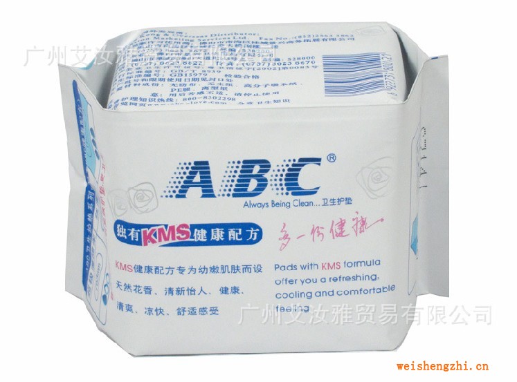 ABC護墊中富含 KMS健康配方。KMS健康配方是由中山醫科大學藥物開發中心經多年研制,并突破傳統,成功融入ABC健康衛生護墊結構中,提供雙重保護,二合為一。不單只吸收分泌物,其健康配方元素更能回復皮膚正常功能,加強皮膚表層的抗菌能力,預防細菌感染、辟味、止癢及保持涼快清爽,并有天然花香氣味,使用后倍覺舒服。
