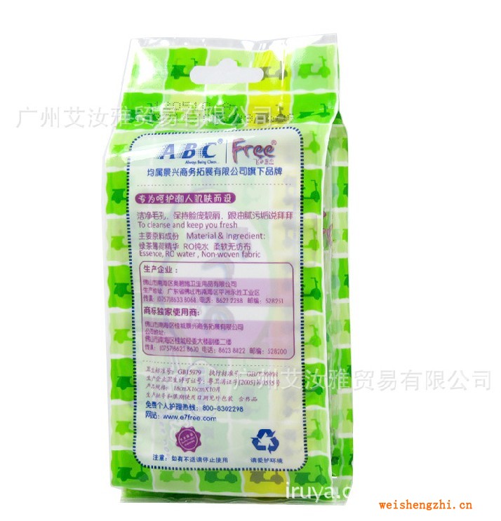 批發FREE飛綠茶薄荷衛生濕紙巾(獨立包裝)肌膚清潔Y02