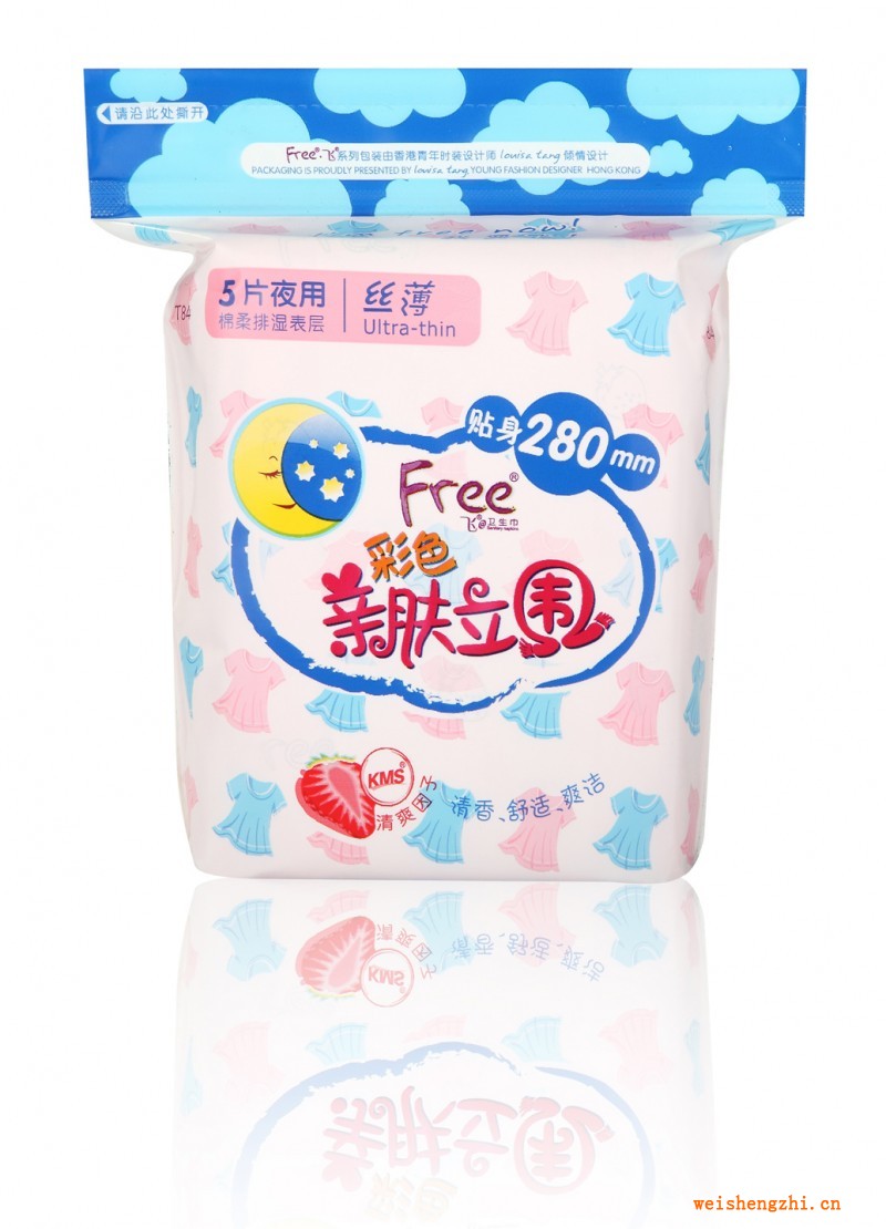 FREE.飛 彩色親膚立圍夜用絲薄棉柔排濕表層衛生巾T84