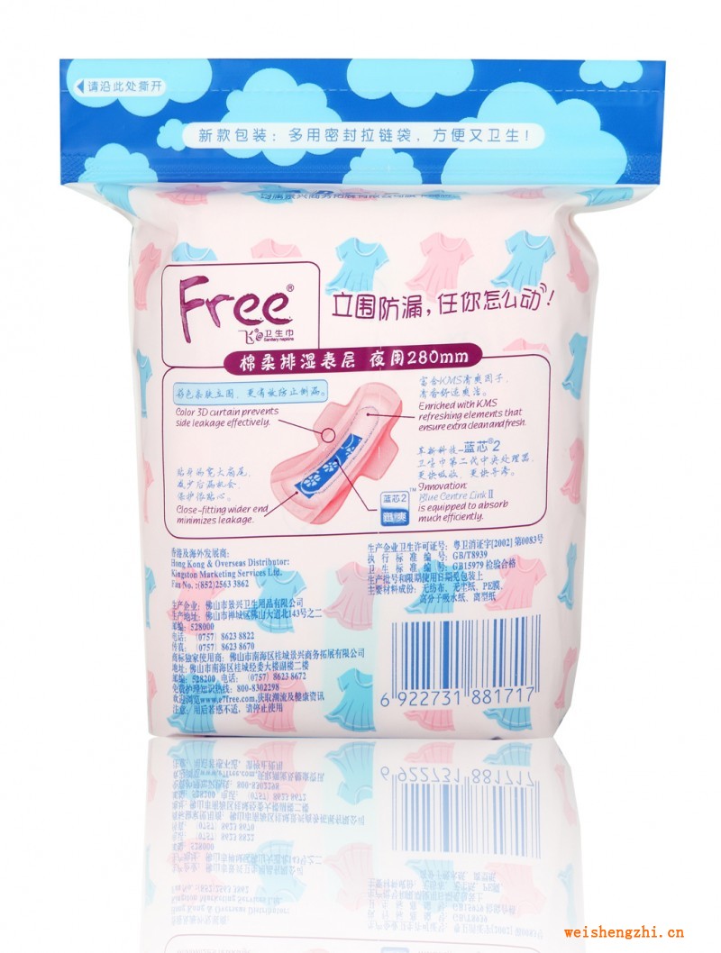 批發FREE 飛衛生 彩色親膚立圍夜用絲薄棉柔排溫表層衛生巾