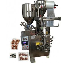 適合包裝的產(chǎn)品;油和辣椒,食用油和芝麻,花生碎,三種物料同時(shí)灌裝,’包裝速度快,效果好