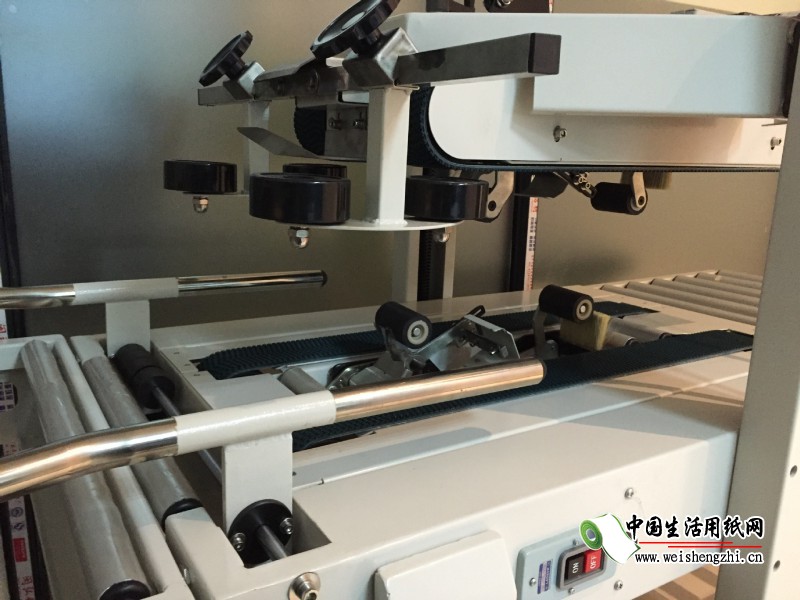 2.人工裝好物料放至機械滑輪推進輸送帶,機械自動上膠、封口,大小規格可調節;
