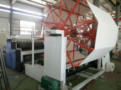 網籠式復卷機是將大卷筒紙經壓花后復卷到大滾籠上,經帶鋸機切割而成多層平板方包面巾紙。機器采用自動計張數,大滾籠直徑大小可按需要調節至損耗低,該機是生產平板方包面巾紙的理想設備。本機的特點在于原紙經點對點壓花后,生產出的產品達到柔軟舒適、重量輕的優點。