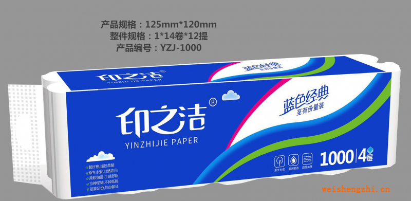 印之潔 藍色經(jīng)典至有份量裝 原生木漿不漂白衛(wèi)生紙1000g
