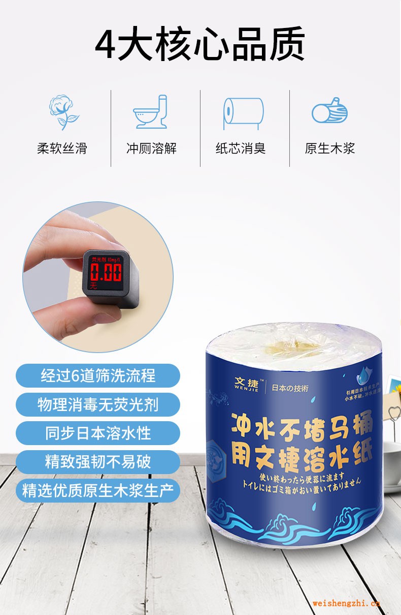 蘇州環保易容文捷紙衛生紙溶水紙可沖水卷筒紙廁紙有芯紙1提