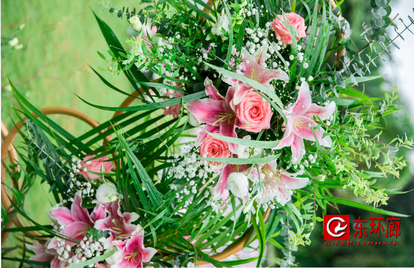 特色婚禮鮮花手工扎制而成,花球狀、半球時尚造型,浪漫絲帶下垂,彰顯浪漫