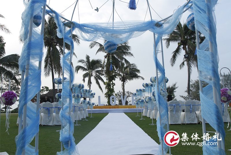 5.夢(mèng)幻藍(lán)色婚禮:藍(lán)是純潔的象征,藍(lán)是夢(mèng)幻的感覺(jué),藍(lán)色總能帶給人們無(wú)限美好的想象。藍(lán)色令浪漫升級(jí),藍(lán)色讓婚禮插上海洋的翅膀。藍(lán)色是對(duì)愛(ài)情最好的詮釋,幸福與祥和,唯美與遐想。