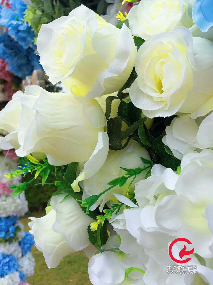 第99屆三亞集體婚禮,色彩搭配采用五彩綻放搭配,婚禮場地繼續沿用面向大海草坪婚禮,鮮花布置場地。