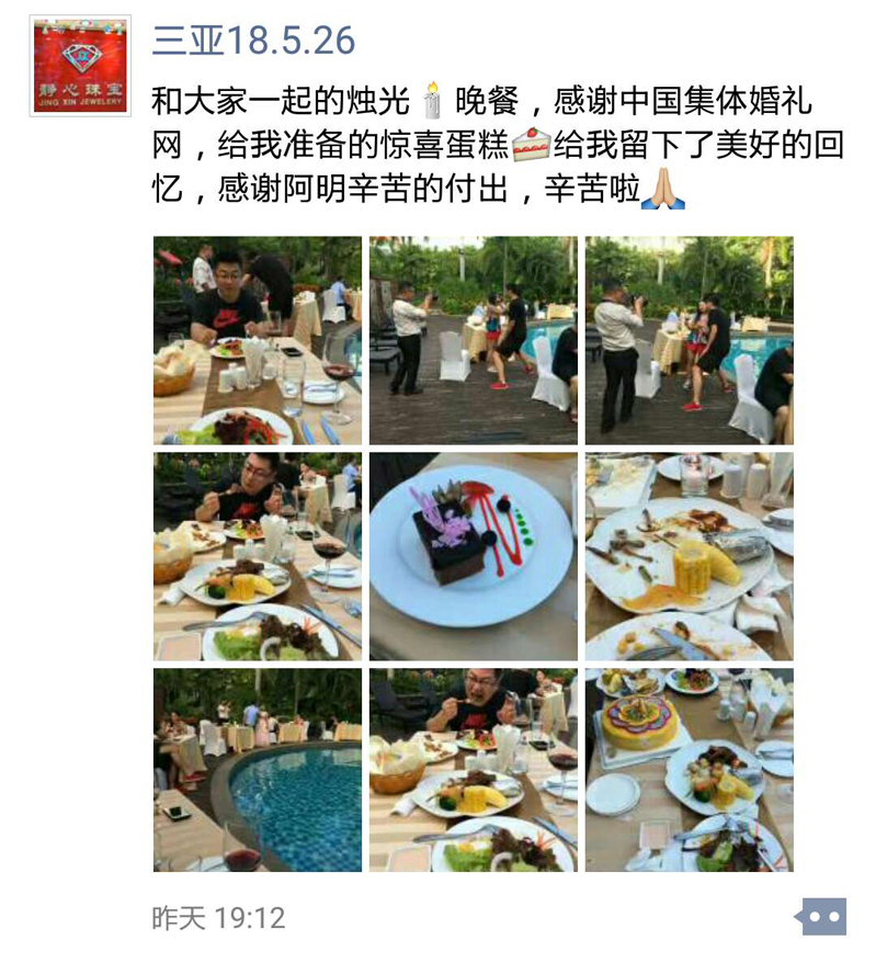燭光晚宴后,不忘發個朋友圈,把新婚的幸福分享給大家。隨后,新郎覺得還是不夠盡興,要爽就爽到爆!經過協商,與其他新人和集體婚禮工作人員一同去了這個地方,慶祝生日與新婚的喜悅。。。