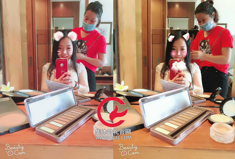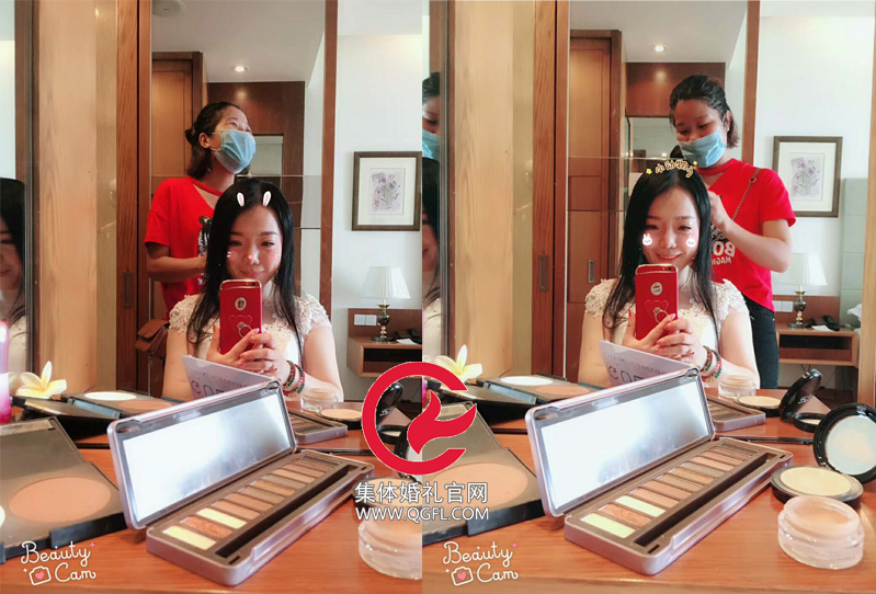 化妝進行時也要自拍,三亞集體婚禮新人就是這樣任性