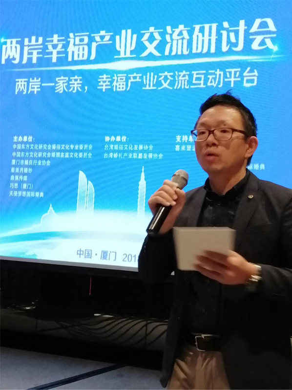 98國際商洽會第四屆中國婚慶文創產業投資洽談會(海峽兩岸論壇分會場),中國婚姻家庭文化委員會IP影視劇制作培訓考務實訓中心主任張劍清作(未來家年華ip模式)介紹,倍受參會者歡迎,會下紛紛商洽加盟合作。