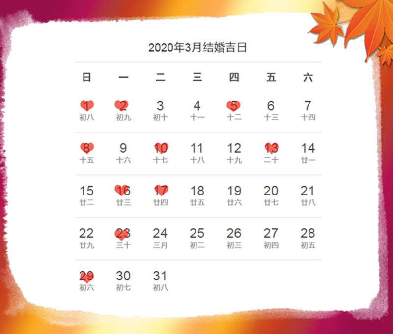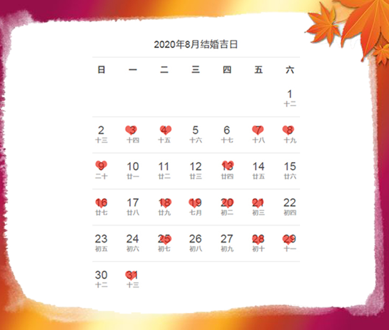 在2019年底就有很多準新人期待2020年舉辦婚禮,把2020賦予“愛你愛你”的含義,與“愛你愛你”搭配的日期詞句更是豐富,據不完全統計2020年的好日期更扎堆,適合嫁娶的好日子較往年更多一些。2020年2月2日原本周末婚姻登記處不上班,硬是被全網刷屏愛的寓意覆蓋,婚姻登記處不得不公布屆時當天臨時加班辦理結婚手續... ...